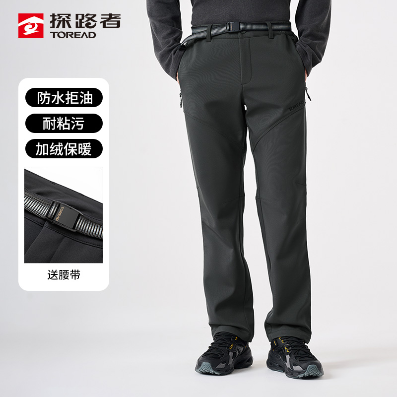 男长裤 加绒加厚防风防水登山滑雪软壳裤 户外秋冬季 探路者冲锋裤