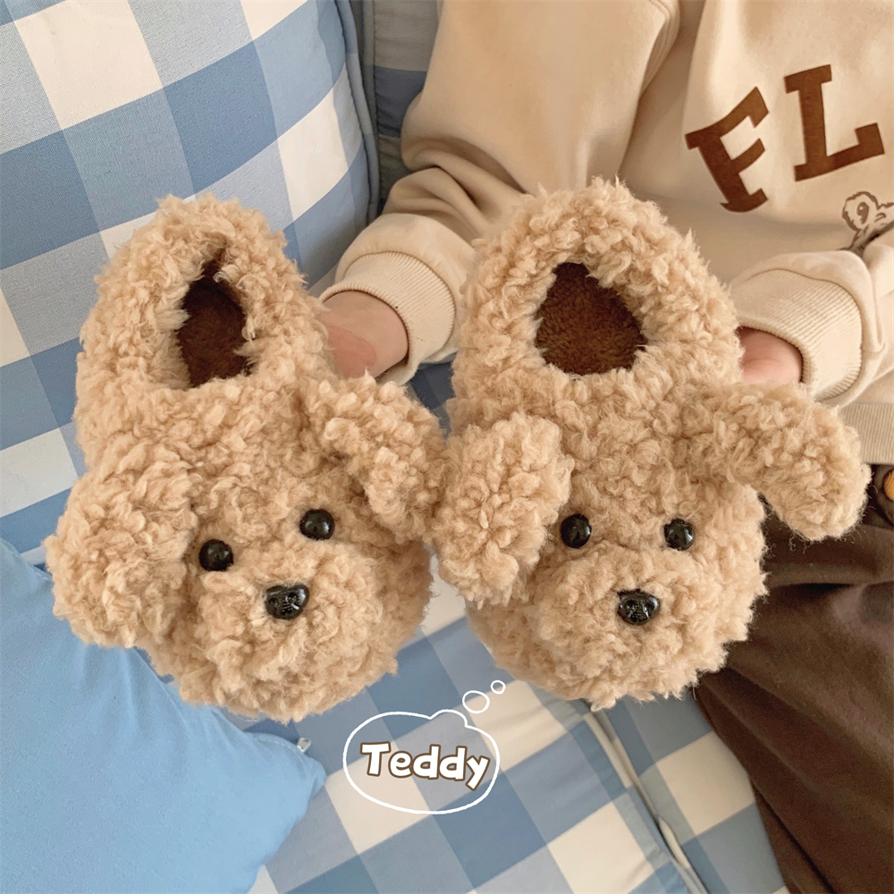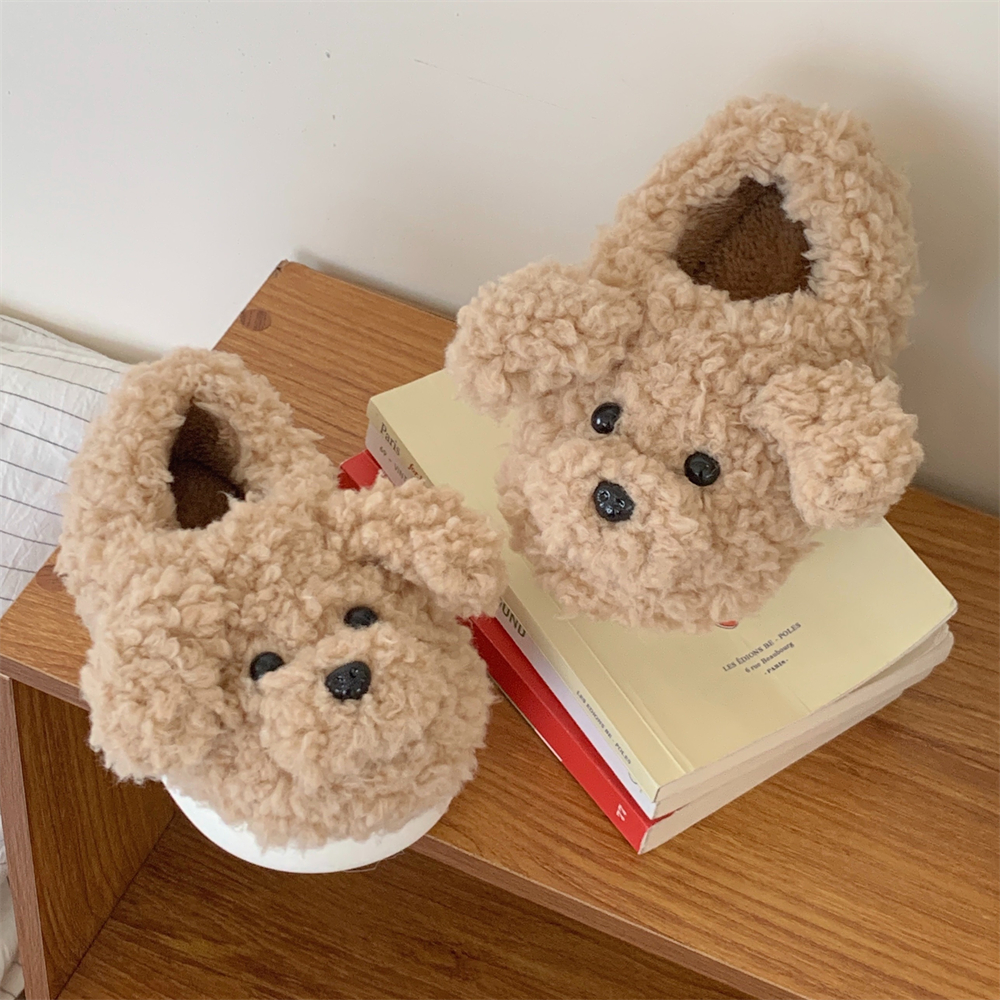 男女 亲子室内居家防滑软底卡通狗狗毛毛鞋 可爱全包跟棉拖鞋 秋冬季