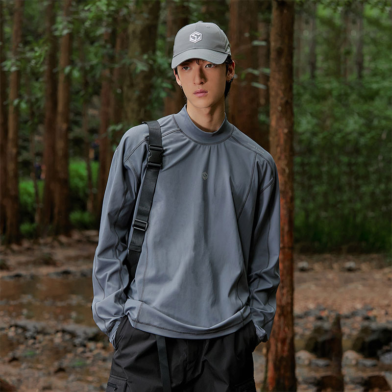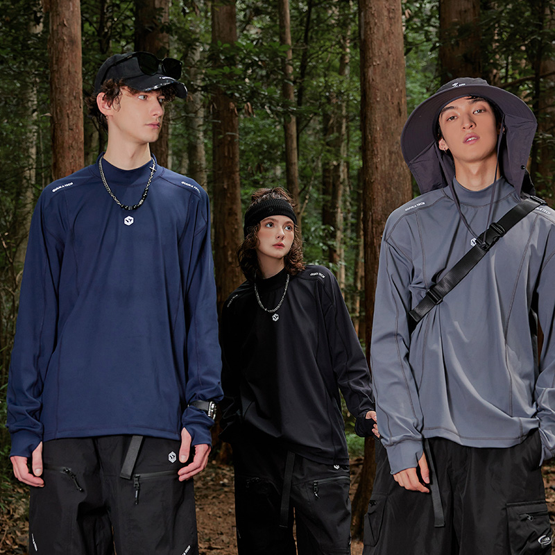 情侣户外速干上衣 T恤男保暖秋冬 GUUKA TECH机能风黑色半高领长袖