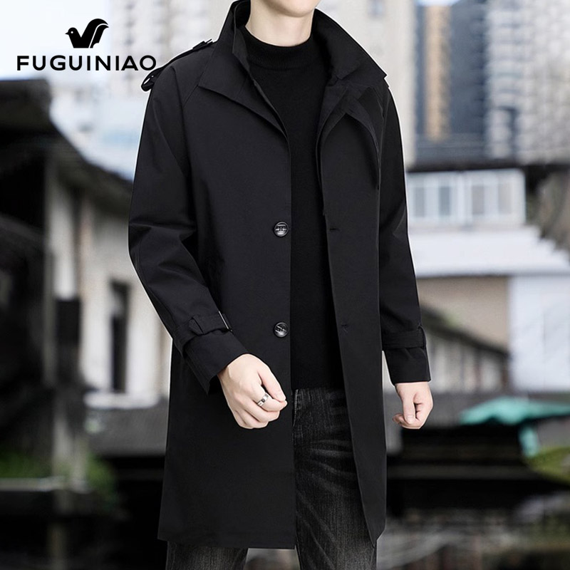 休闲宽松外套男装 富贵鸟秋季 大衣服2025年新款 潮流中长款 风衣男士