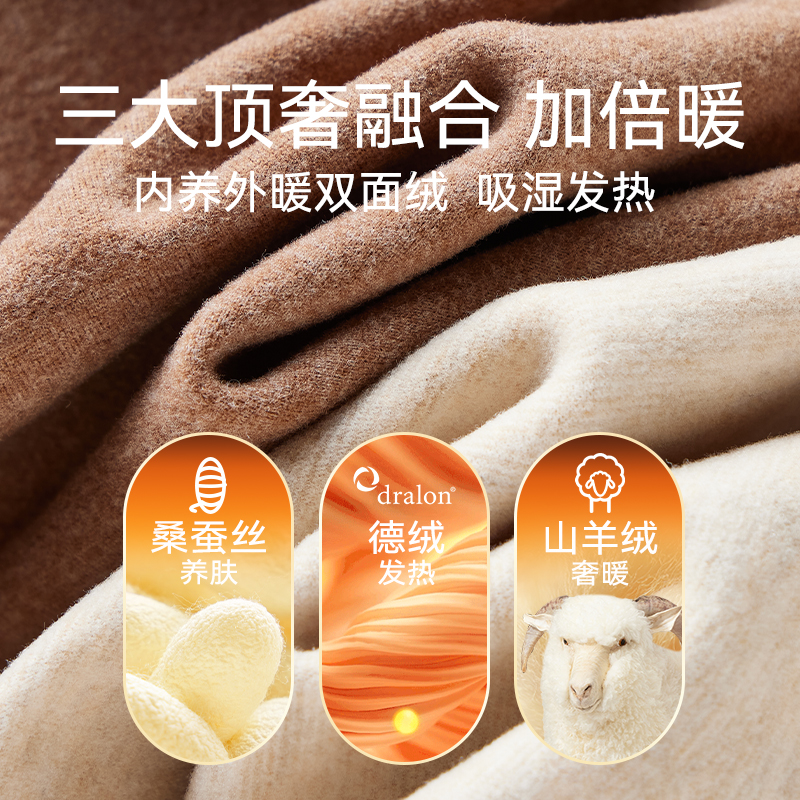 保暖套装 俞兆林7A抗菌羊绒蚕丝贴片男女同款 香菇双十一