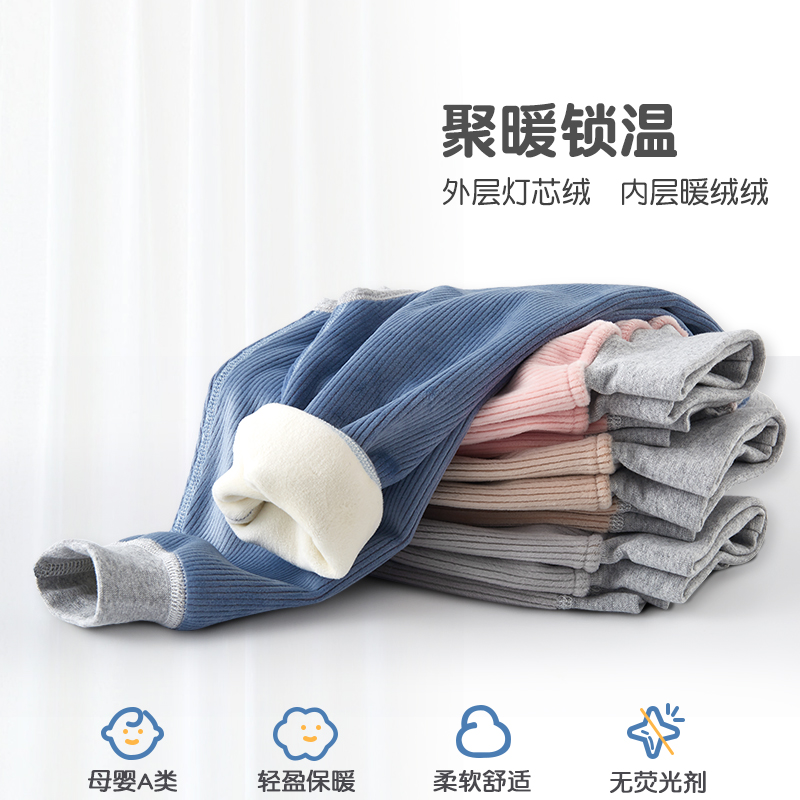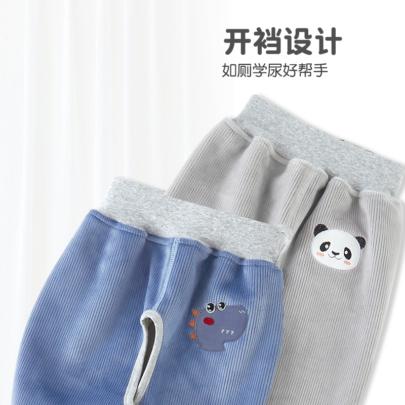 子加厚外穿一体绒 儿童免脱开档裤 婴儿开裆裤 秋冬男宝宝加绒保暖裤