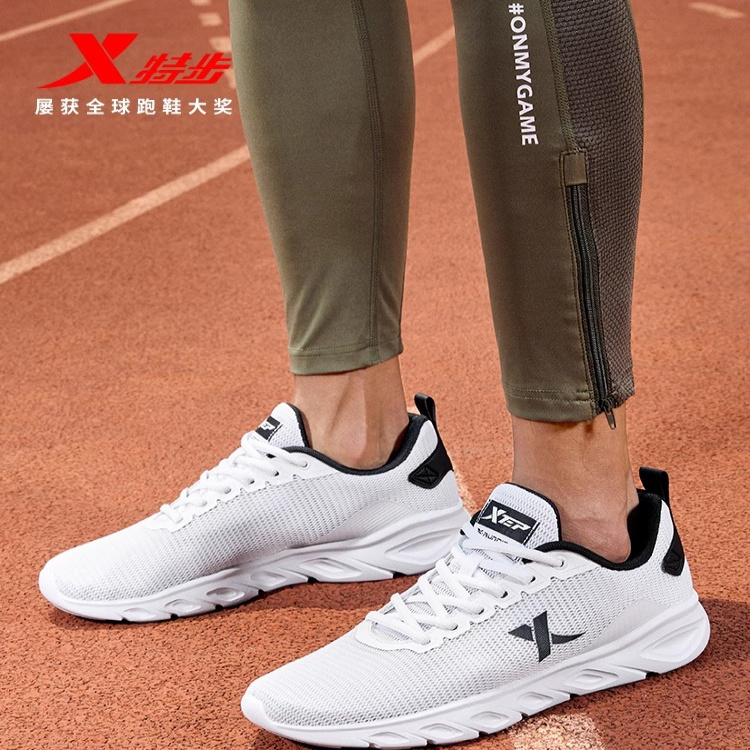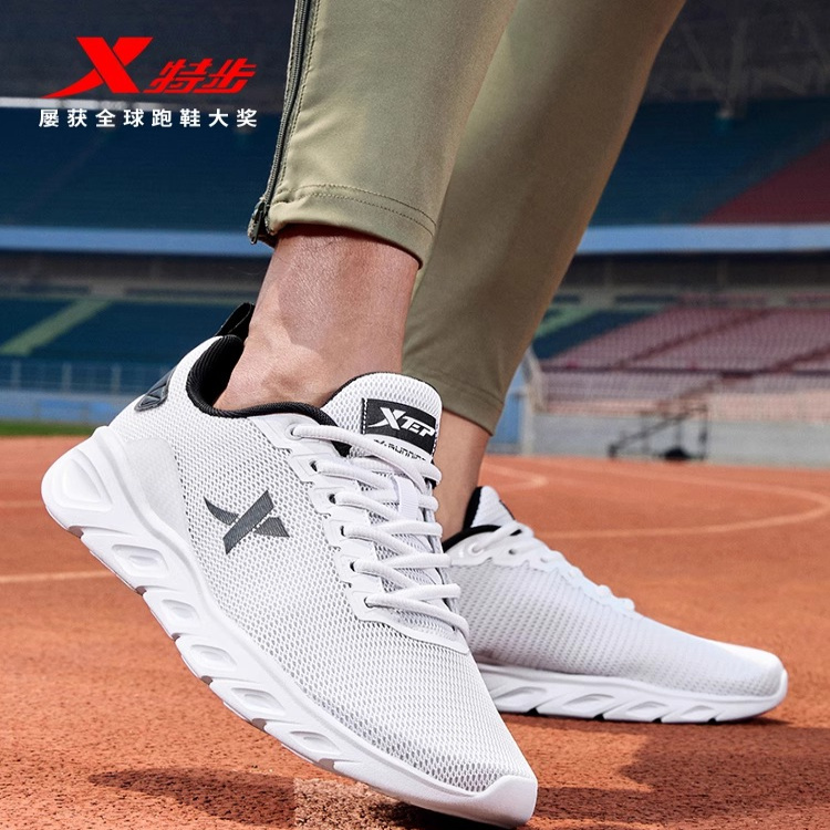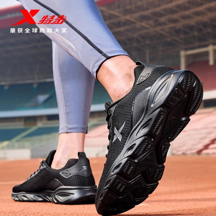 跑步鞋 子运动鞋 男网面夏季 网面透气软底缓震鞋 黑色跑鞋 特步男鞋