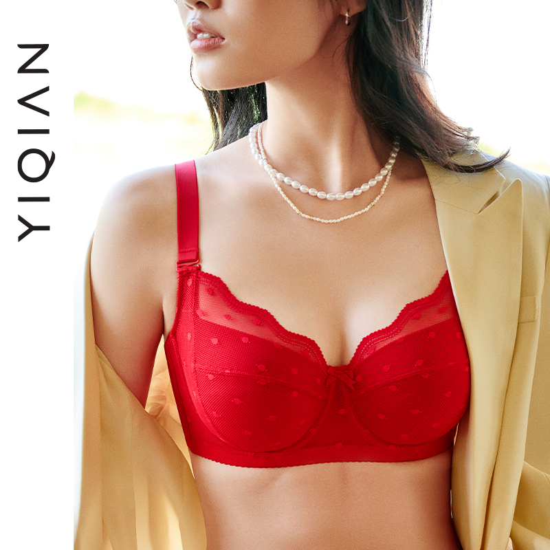 幸棉前扣内衣女小胸显大圆盘胸收副乳红色无痕防下垂文胸罩聚拢