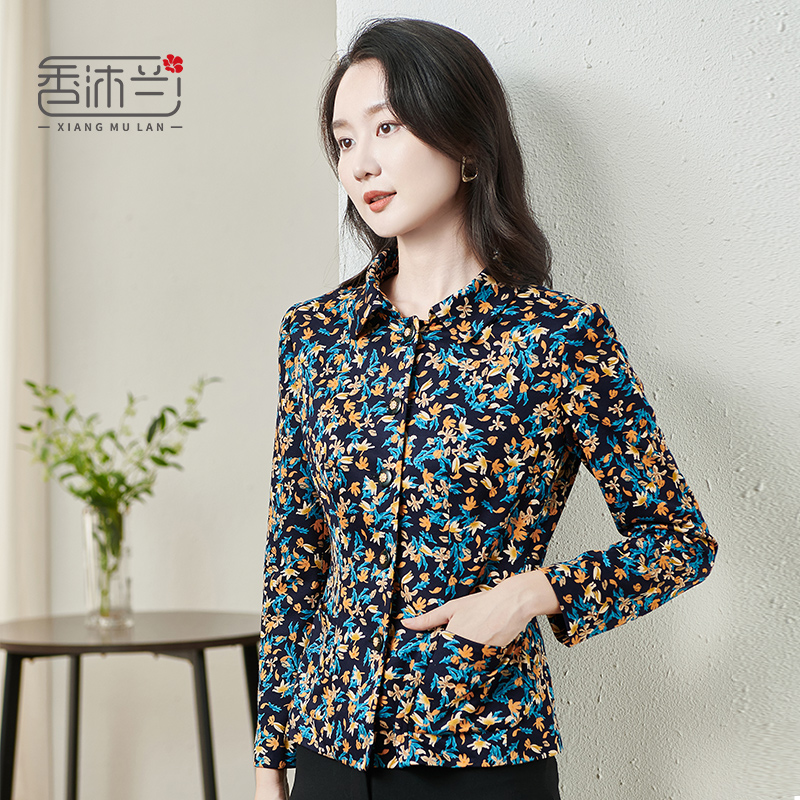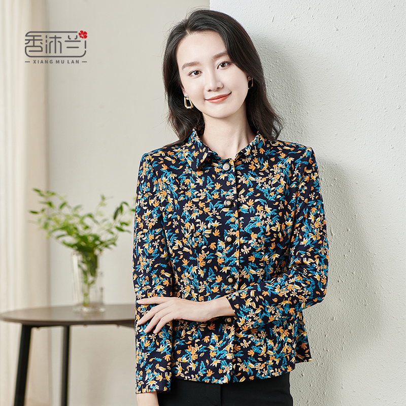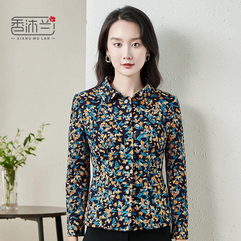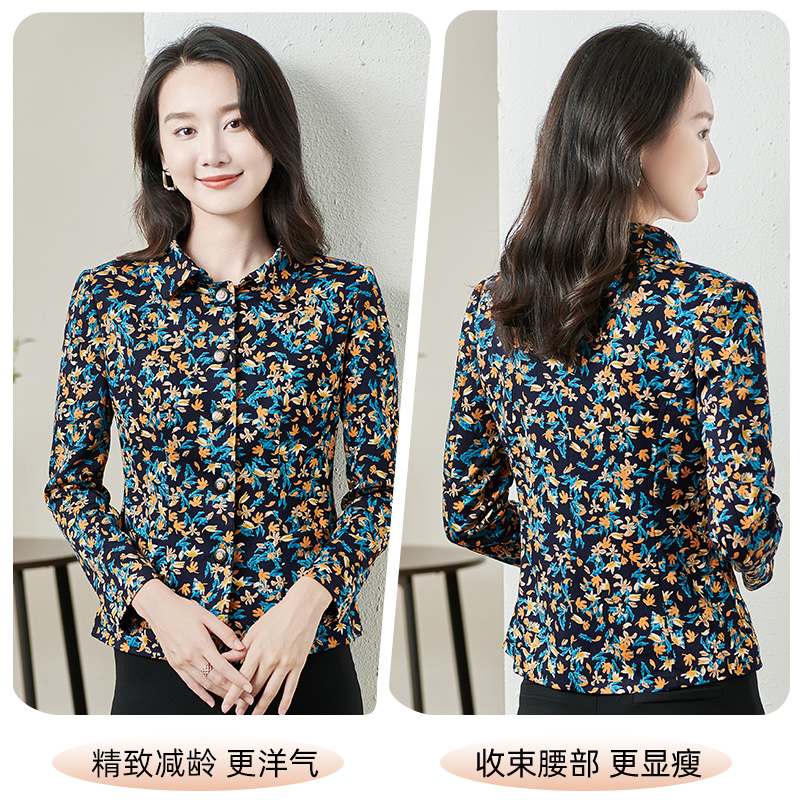 大码 香沐兰中老年妈妈装 显瘦开衫 碎花翻领修身 外套女 2025秋冬新款
