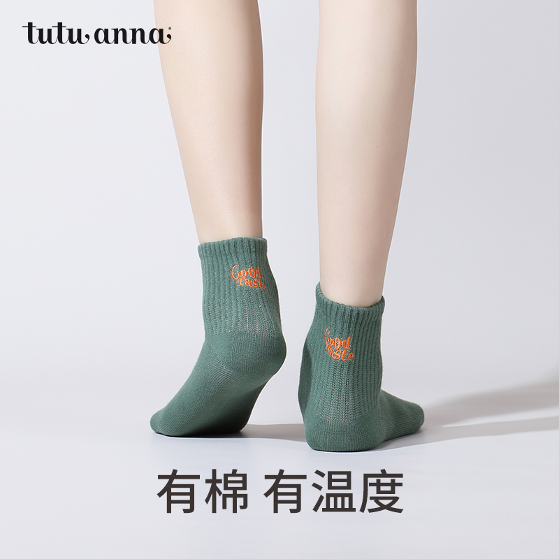 全棉短袜子女春秋季 中短筒袜无骨 纯棉吸汗防臭夏透气运动风秋冬款