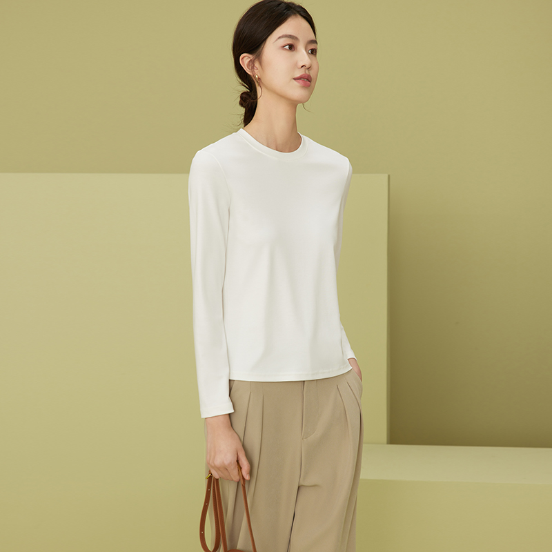春秋季 上衣白色圆领显瘦宽松内搭纯色打底衫 t恤女士2023新款 长袖