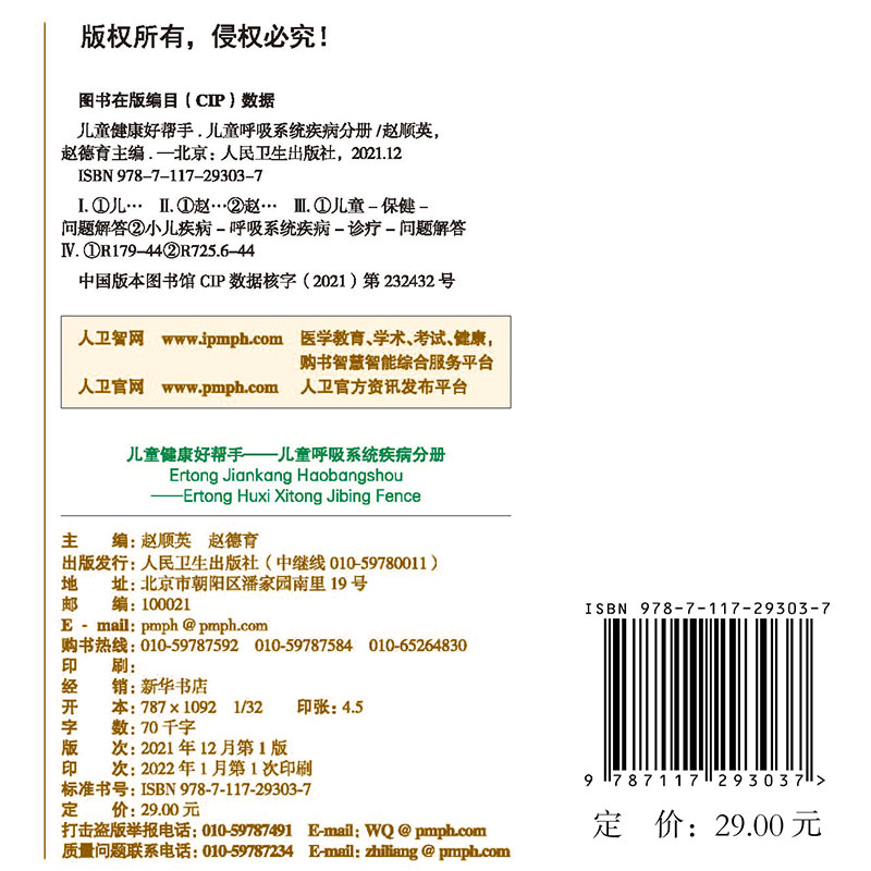 社9787117293037 儿童健康好帮手儿童呼吸系统疾病分册主编赵顺英赵德育人民卫生出版 现货正版 平装