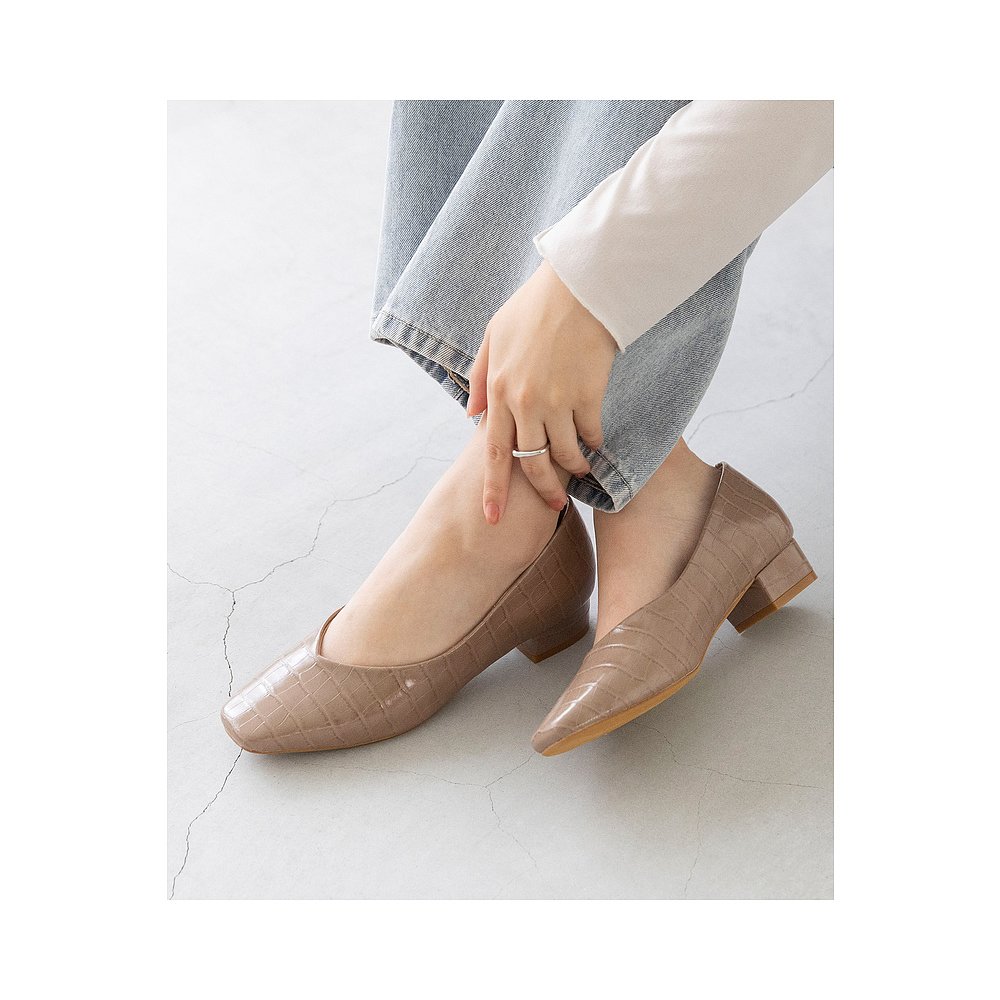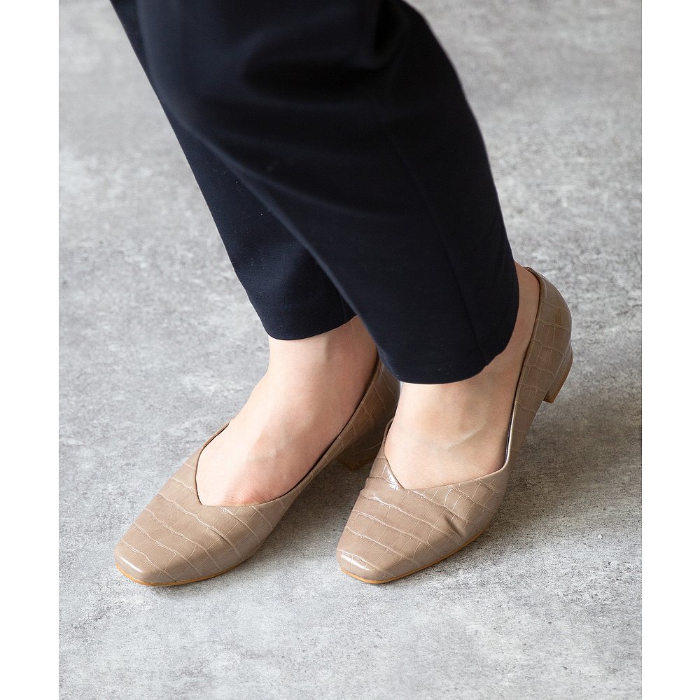 menue Menue 型剪裁方头粗跟高跟鞋 Greige 1037 日本直邮