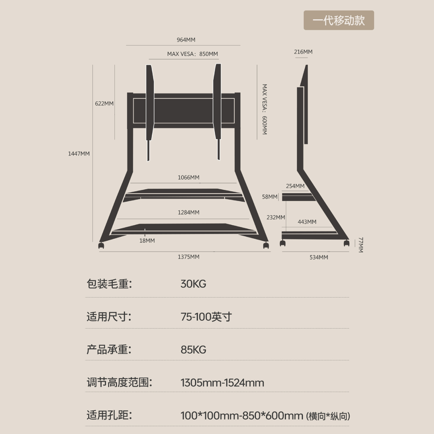 100寸雷鸟索尼 特悦视FITUEYES电视机支架客厅大尺寸适用75