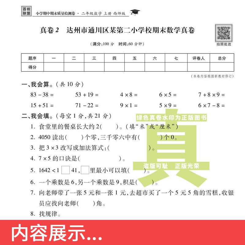 期中期末总复习考试真题试卷 达州自贡泸州成都市重点名校小学二年级上单元 四川十大名校真卷二年级上册期末测试卷数学西师版 XS版