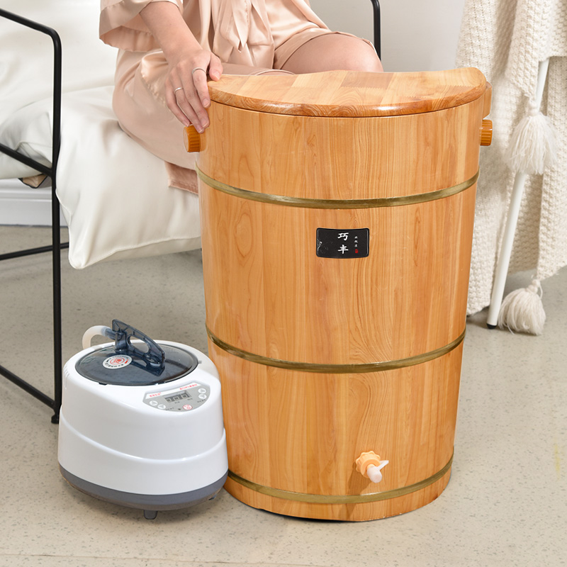 泡脚桶木质高深桶过膝盖中药熏蒸加热恒温蒸脚木桶家用实木洗脚盆