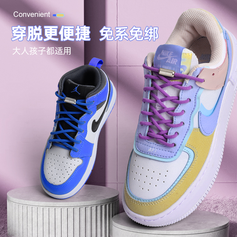 儿童加粗圆形免系鞋 运动鞋 带扣固定神器 带绳弹力松紧男女款 懒人鞋