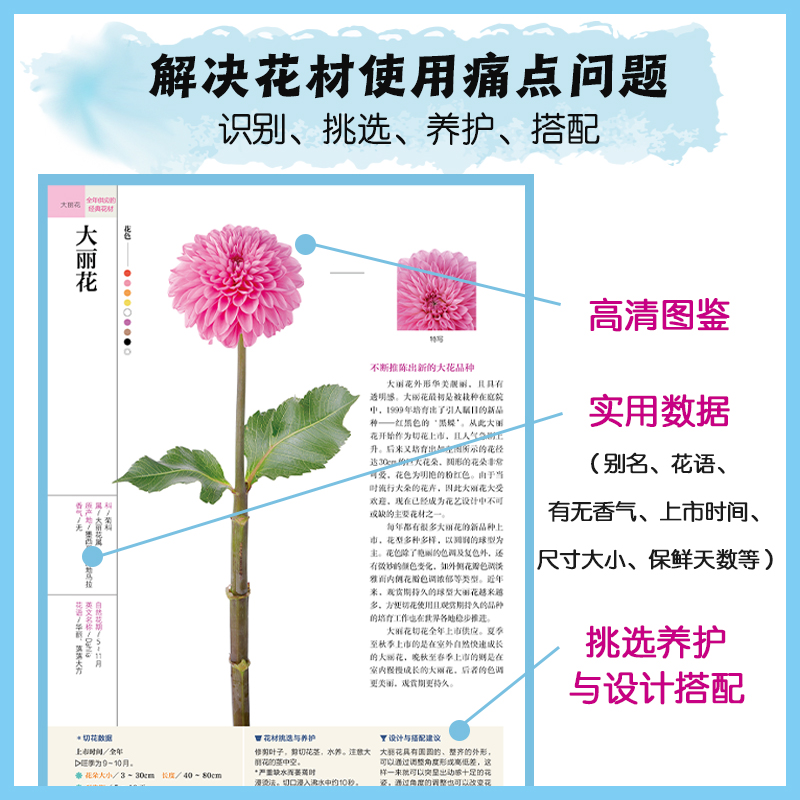 花艺设计与制作 花材应用速查手册 零基础 开花店实用书籍 花艺设计花材使用手册 花材养护方法搭配原则一本通 花艺师