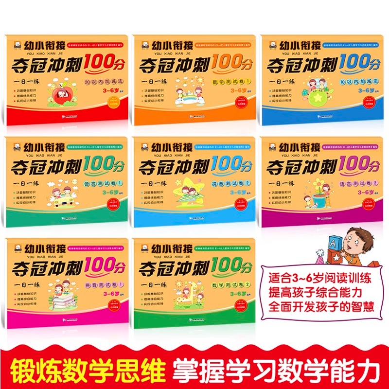 升小学数学题10 幼儿园大班升一年级幼升小一日一练 学前班试卷测试卷8册 拼音拼读训练 20以内加减法口算天天练 幼小衔接教材全套