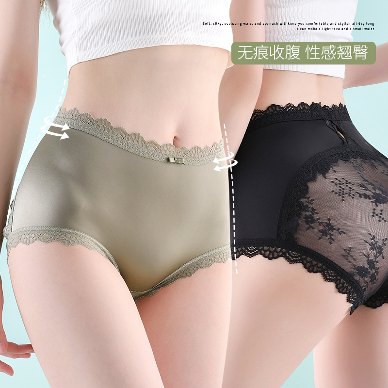 夏季 洁韵朵高腰蕾丝内裤 女冰丝强力收腹无痕抗菌收小肚子提臀短裤