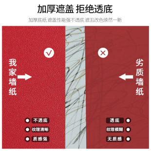 大红色墙纸自粘卧室防水用贴壁纸中国红遮丑防潮墙面文化破损美化
