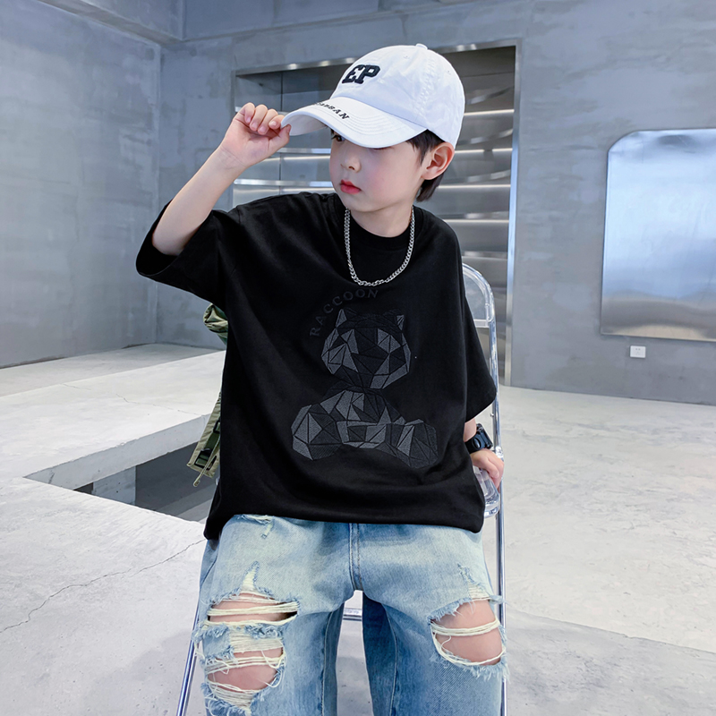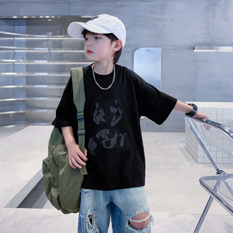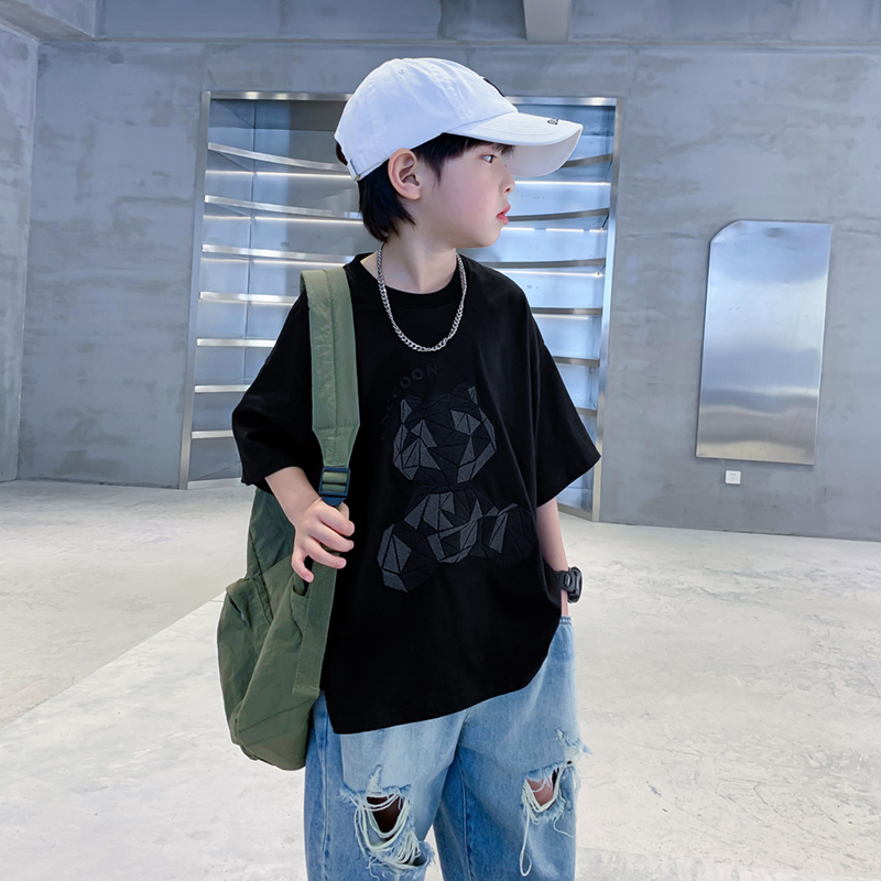 黑色小熊短袖 韩系半袖 T恤2025新款 夏季 体恤潮 上衣儿童装 男童夏装