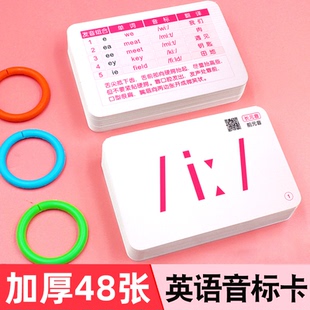 新版 48张英语国际音标卡片小学生初中英文发音入门教材学习神器英文教学教具儿童快速记单词速记卡