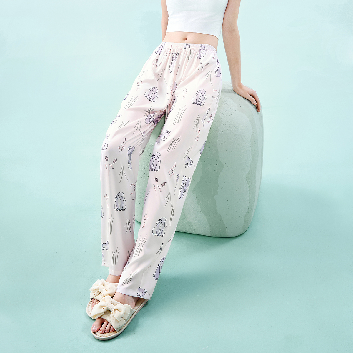 遛弯裤 秋季 家居裤 睡衣女款 可外穿 冰丝睡裤 居家女士丝绸薄款 女长裤