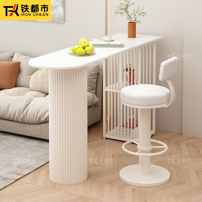 吧台桌子奶油风家用阳台休闲小餐边柜一体隔断柜家庭厅岛台高脚桌