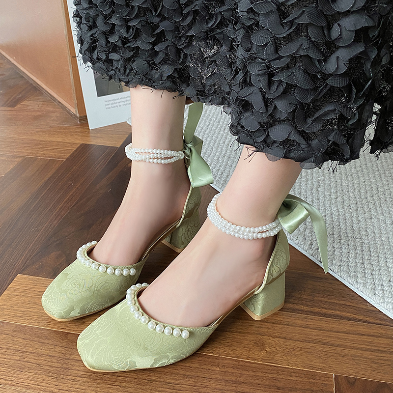 女夏季 国风汉服玛丽珍鞋 高跟鞋 配裙子包头凉鞋 子 新中式 女鞋 旗袍鞋