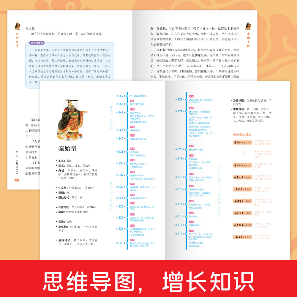 秦始皇传中小学生课外书历史人物传记千古一帝 中国皇帝传历史小说谋略权术故事 传奇人生思维导图版