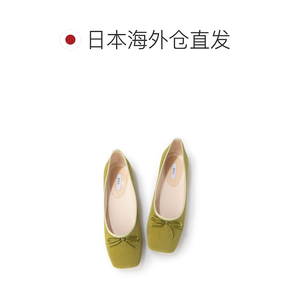 单鞋 Evol女士时尚 绿色蝴蝶结浅口舒适平底方头靴子 日本直邮