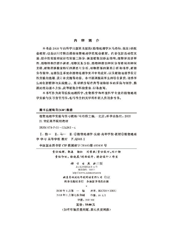 科学出版 大中专理科数理化 植物地理学实验与实习教程 社9787030242624书籍KX 书
