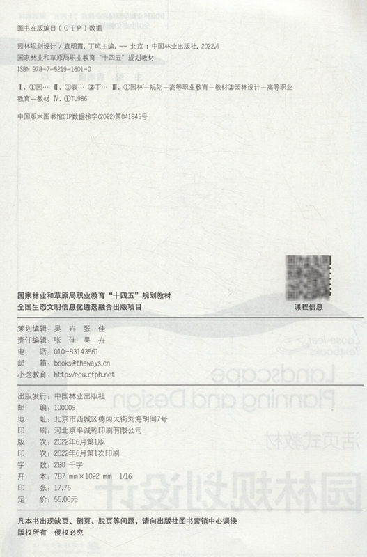 袁明霞 教材国家林业和草原局职业教育十四五规划教材 丁琼 1601 社 园林规划设计 中国林业出版 活页式