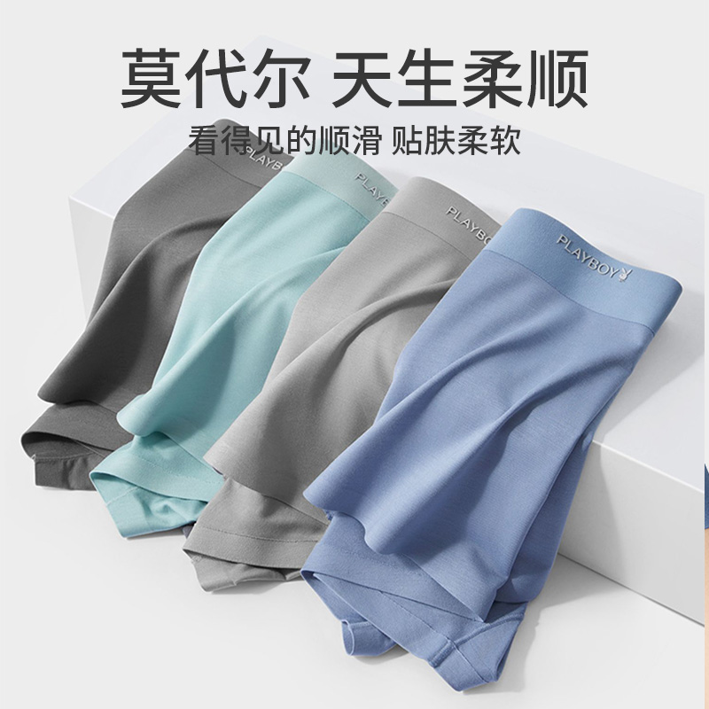 凉感男生四角裤 花花公子男士 平角裤 冰丝无痕莫代尔抗菌大码 内裤