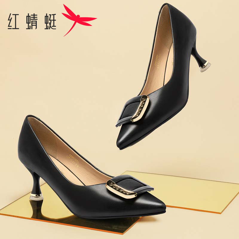宽楦羊皮尖头细跟通勤浅口单鞋 大码 黑松露 秋冬女鞋 7or9黑色高跟鞋