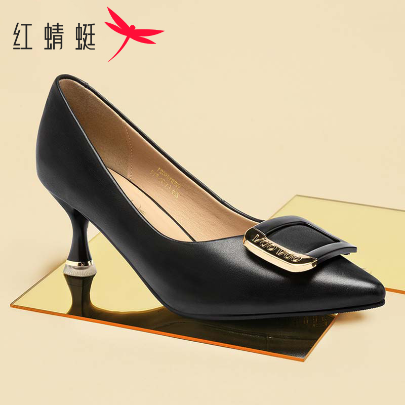 单鞋 羊皮浅口法式 千百度粗高跟鞋 异形跟职业通勤大码 静音系列
