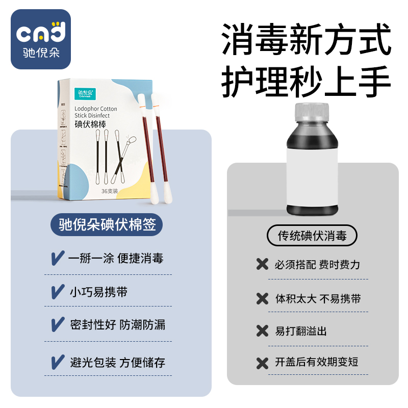 婴儿碘伏棉签棉棒一次性新生 儿肚脐带消毒宝宝清洁专用医用碘酒