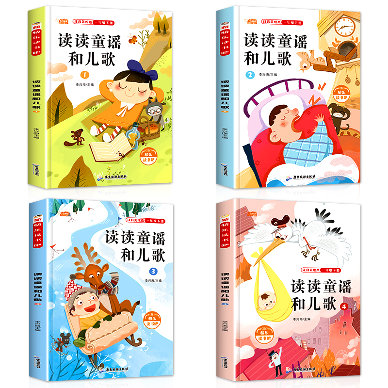 一年级下册阅读课外书必读 快乐读书吧书籍和大人一起读人教版 读读童谣和儿歌注音版 正版 1年级课本配套同步故事书 老师推荐 全套4册