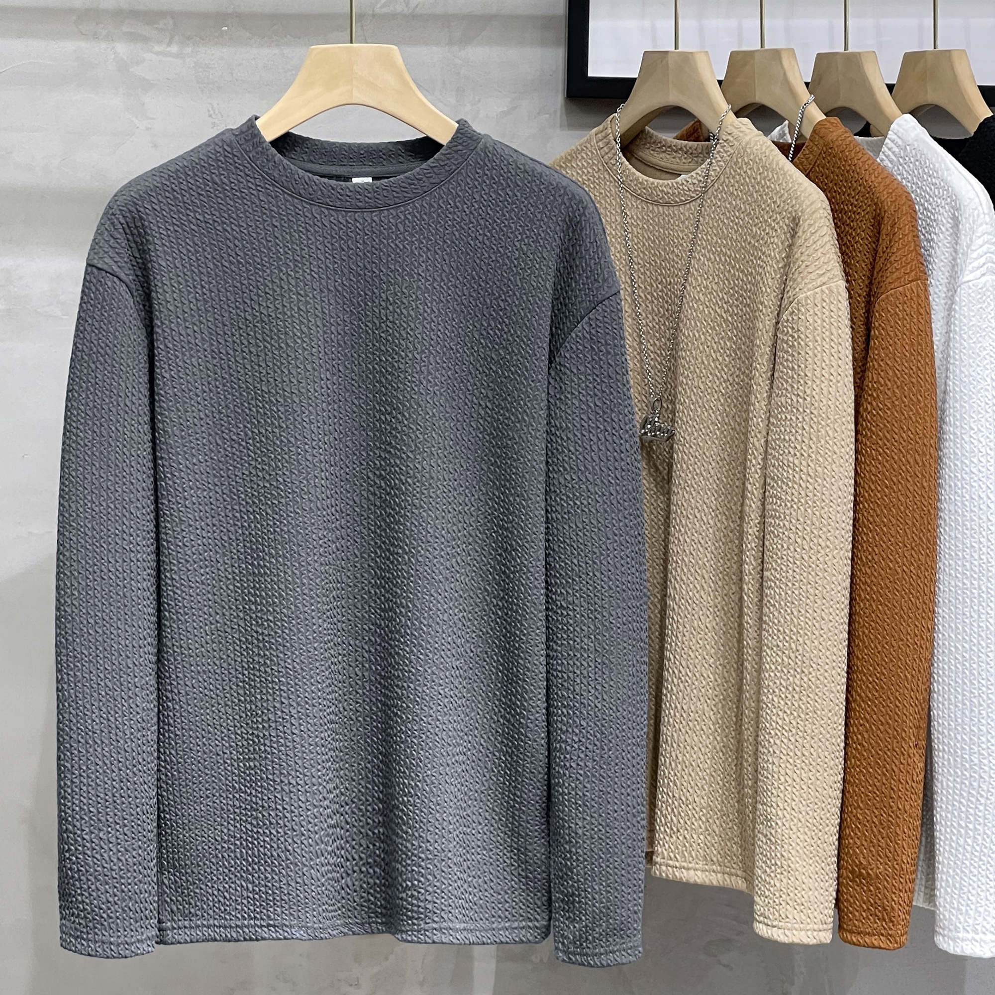 潮流宽松休闲肌理质感百搭针织打底衫 T恤男韩版 长袖 2025春秋新款