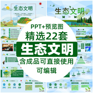 绿色生态文明建设ppt课件模板保护环境污染防治理低碳可持续发展