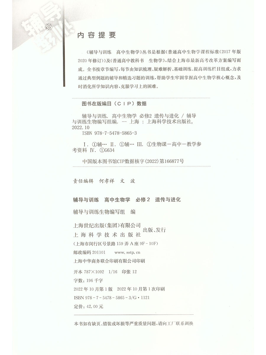 社 上海科学技术出版 新思路辅导与训练 高中生物学必修2遗传与进化高一下册生物必修第二册新课标辅导与训练高中教辅