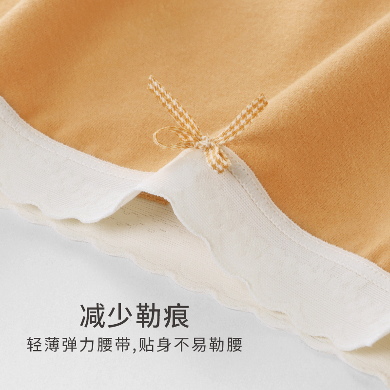 彩田内裤 女生新疆棉质中腰舒适蕾丝边蝴蝶结抗菌底裆纯色三角内裤