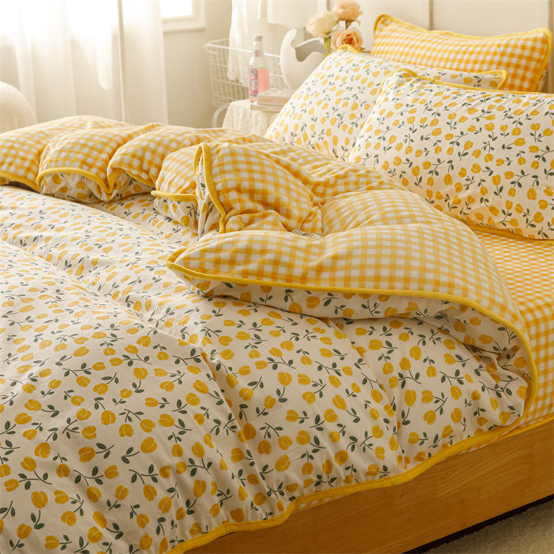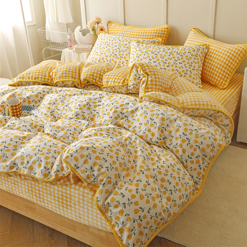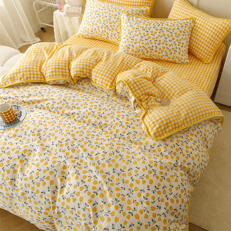 无印良品全棉床单学生宿舍纯棉卡通儿童被套秋冬三件套床上用品