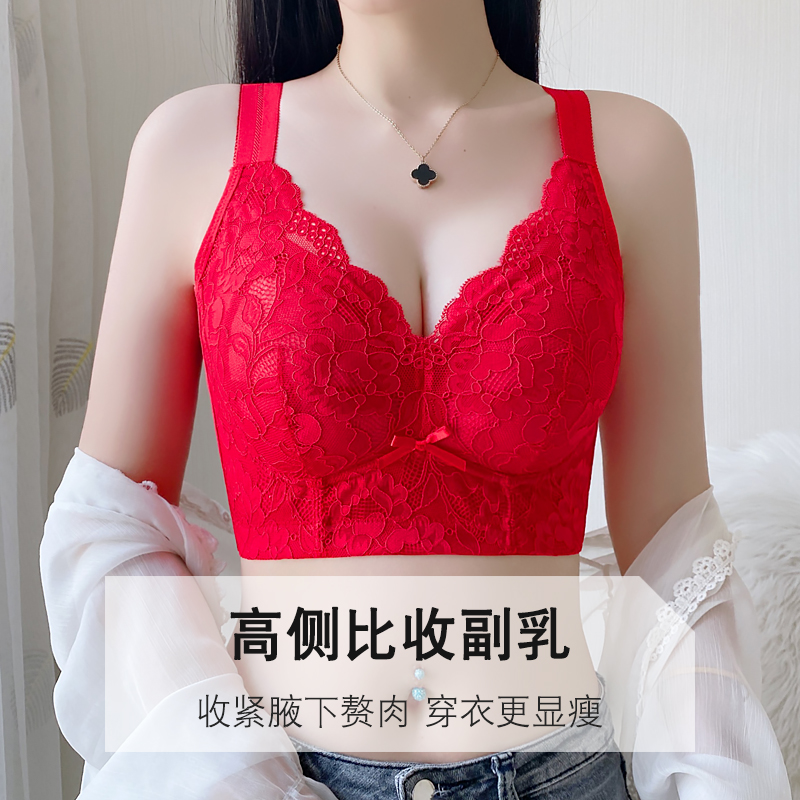 属蛇本历年红色内衣大胸显小全罩杯高侧比收副乳防下垂调整型文胸