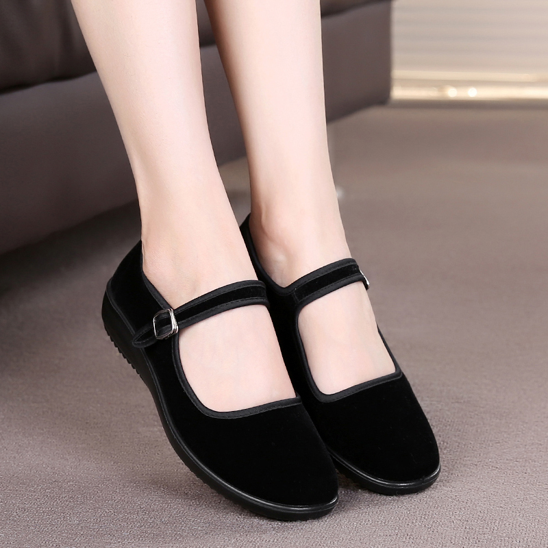 舞蹈鞋 酒店黑色工作单鞋 平底软底防滑妈妈鞋 大码 老北京布鞋 鞋 女鞋