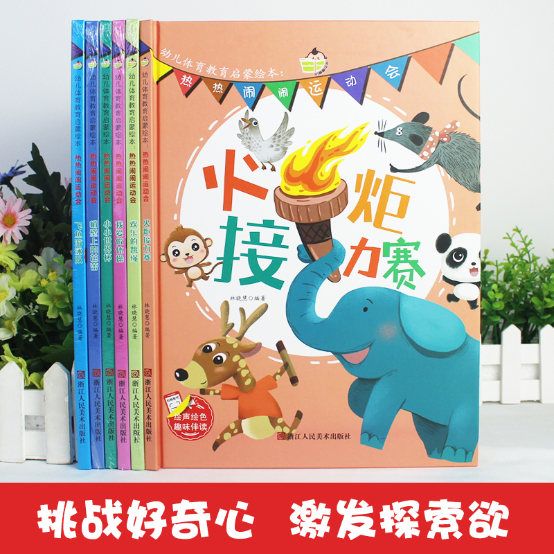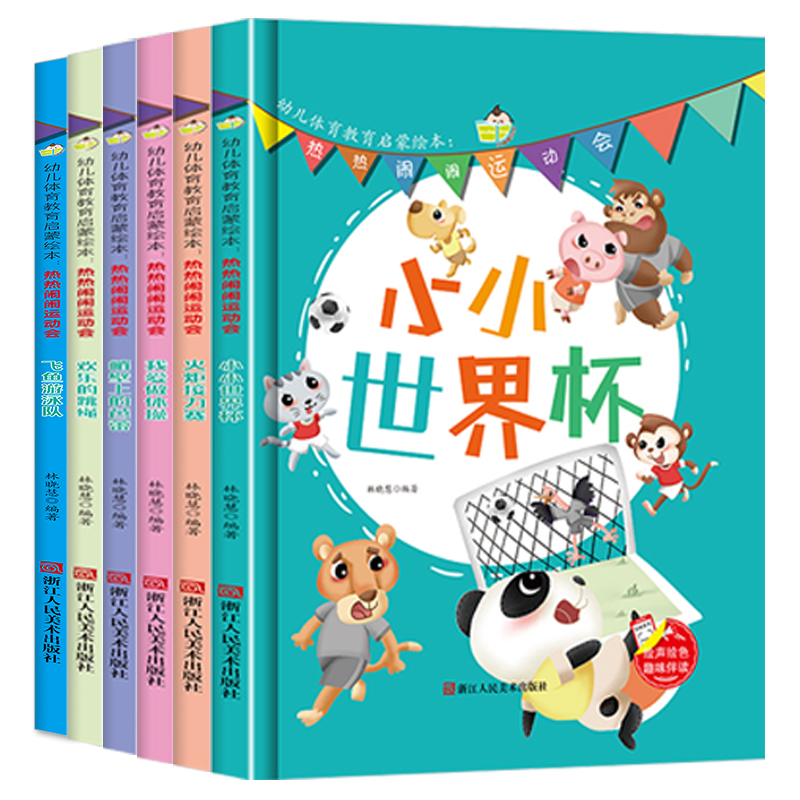 幼儿体育教育启蒙绘本热热闹闹运动会全套6册幼儿园阅读小班中班大班精装 硬壳绘本儿童我爱做体操小小世界杯小火炬接力赛游泳跳绳