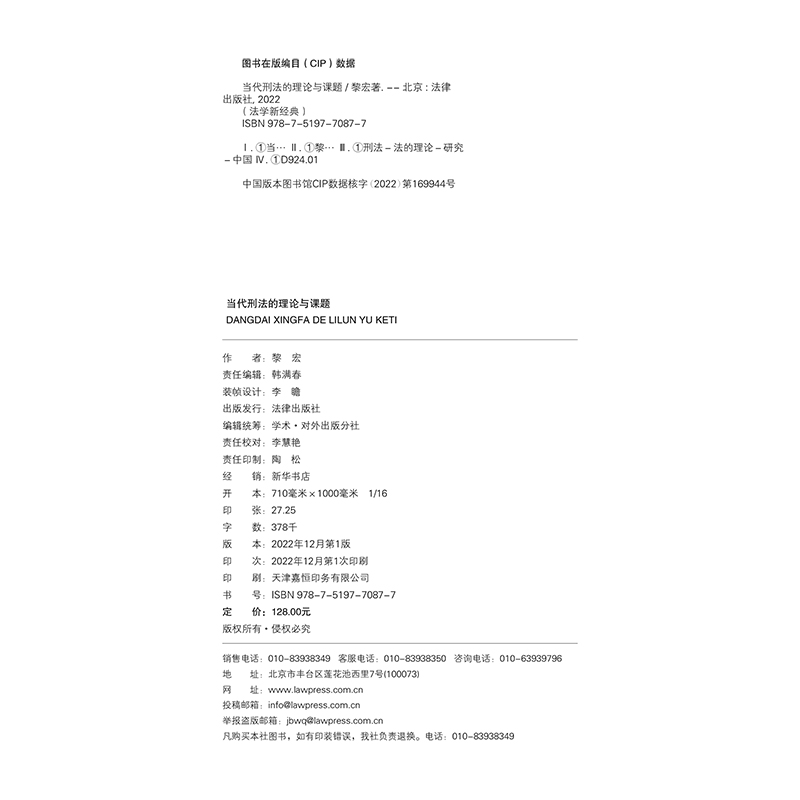 理论与课题 天下 社 2022新书 9787519770877 法律出版 当代刑法 黎宏 正版 法学新经典