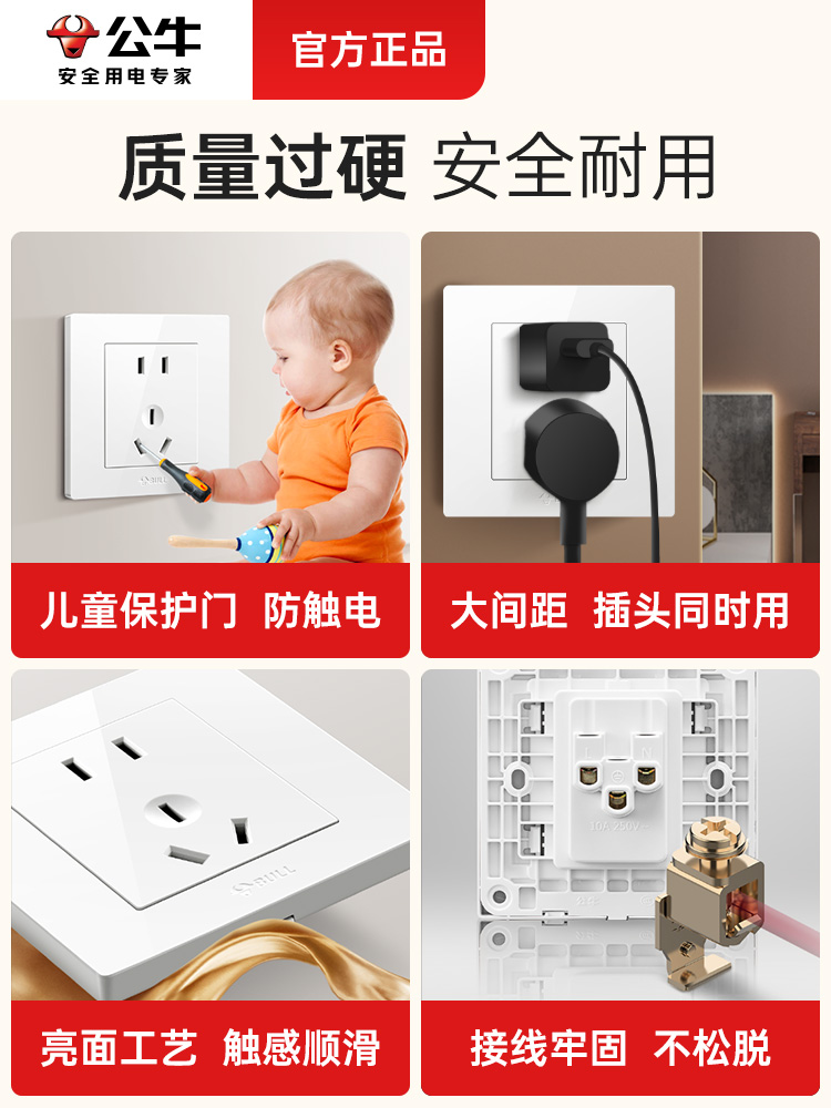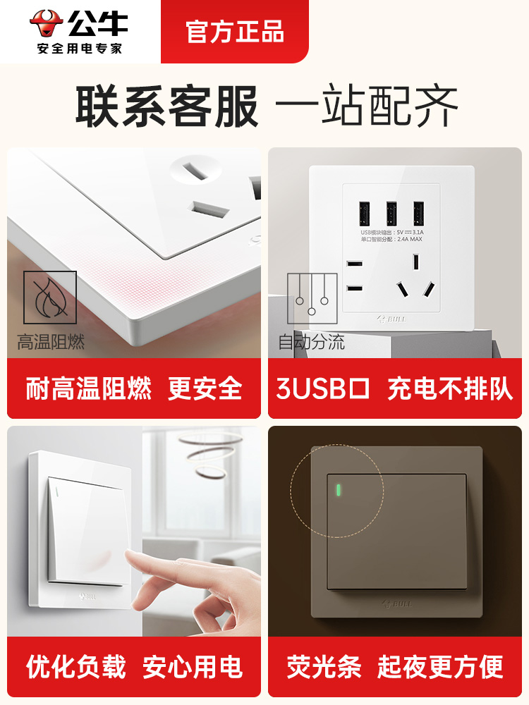 公牛开关面板电灯开关家用单开一开单双控双联三四位床头开关按钮