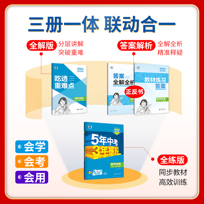 2025秋五年中考三年模拟八年级上下册语文数学英语物理生物地理政治历史人教版 青岛北师初二八年级练习必刷题5年中考三年模拟