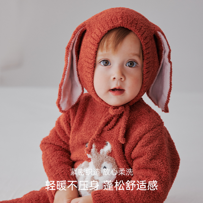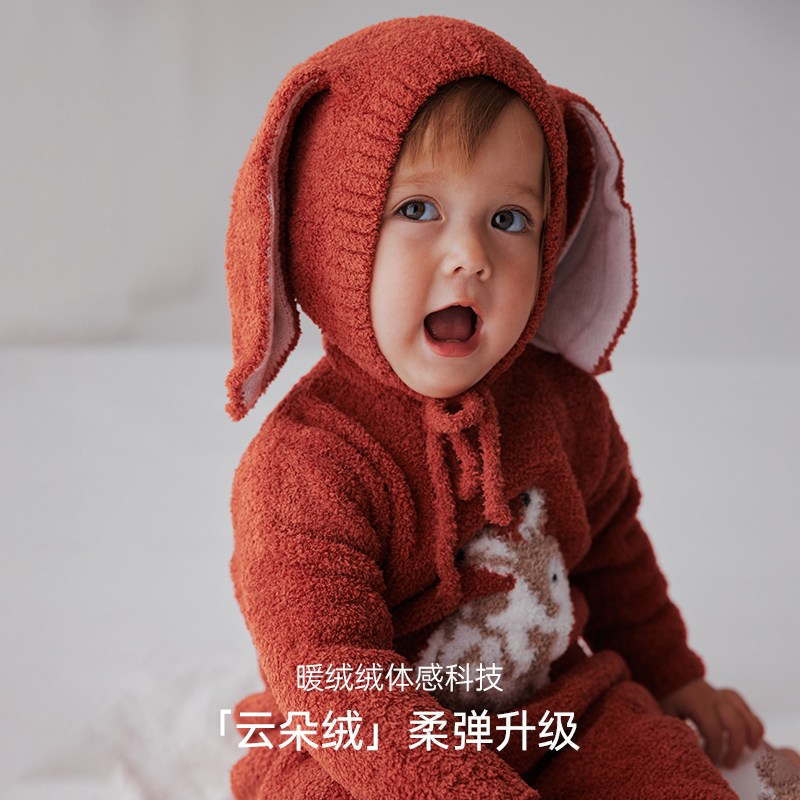 Oak Family新生婴儿连体衣春节拜年服半边绒满月百天宝宝过年爬服