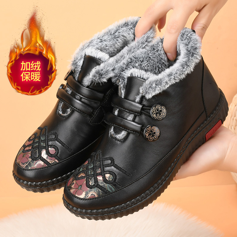 2025冬季 中老年女棉靴加绒加厚老太太棉靴防滑防水妈妈雪地靴 新款