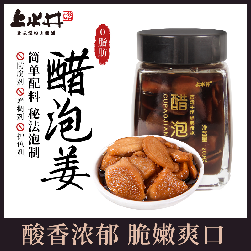 上水井醋泡生姜200g老陈醋泡姜山西特产腌生姜小黄姜腌制醋泡姜片
