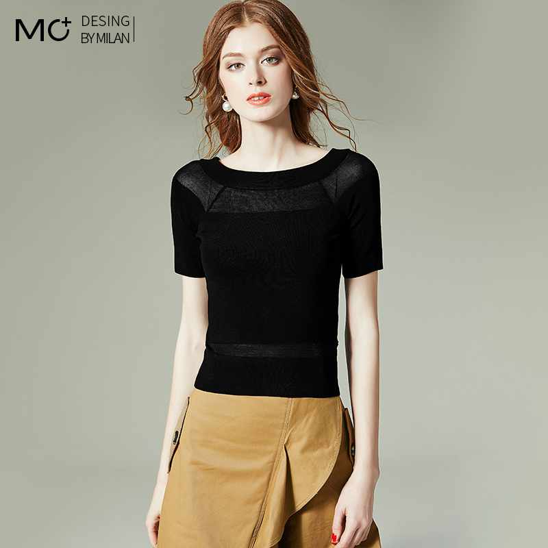 内搭上衣中袖 大码 毛衣女短袖 针织打底衫 t恤胖mm春秋 半高领五分袖